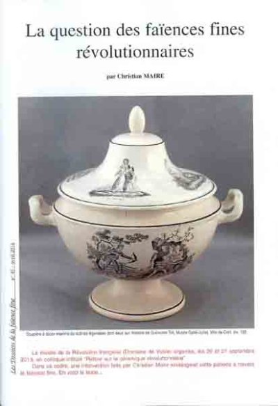 L’auteur, qui a communiqué au colloque de Vizille en 2013 sur le "Retour sur la céramique révolutionnaire" à travers la faïence fine, présente ici de nombreuses faïences fines anglaises imprimées à thème révolutionnaire et pose de nombreuses questions relatives à cette production. A propos d’une soupière qui avait été récemment datée de la période révolutionnaire et attribuée à la manufacture genevoise de Pictet, il développe toute une série d’arguments prouvant que le centre de production est français (Aumale) et qu’elle a été fabriquée vers 1830.