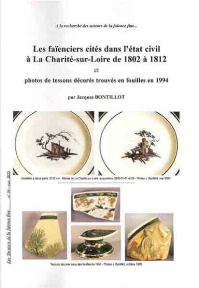 Les faïenciers cités dans l’état civil à La Charité-sur-Loire de 1802 à 1812, et photos de tessons décorés trouvés en fouilles en 1994.