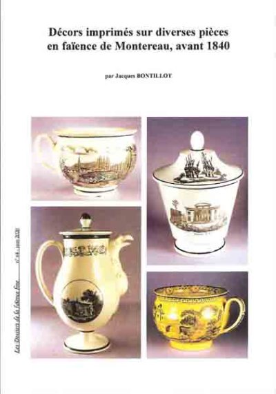 Décors imprimés sur diverses pièces en faïence de Montereau, avant 1840.